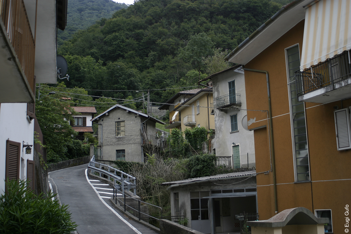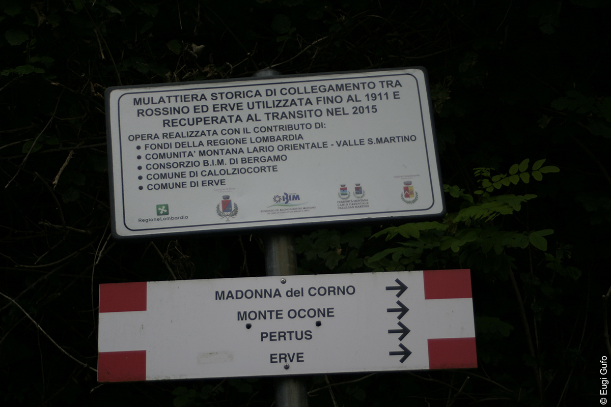 Dopo avere attraversato velocemente Calolziocorte (che avevo già esplorato nel 2016), ho camminato lungo una strada automobilistica poco trafficata e mi sono trattenuto per poco tempo nel paese Rossino. Riprendendo poi il tornante appena menzionato, ho avvistato presto il cartello stradale di Erve.