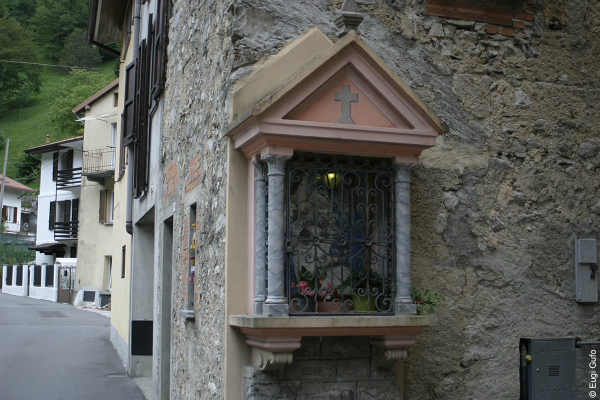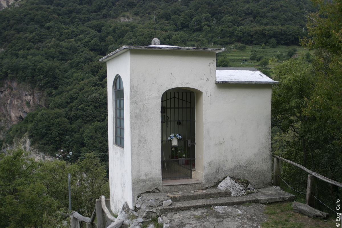 Dopo la piazzola con la cappella questo ramo del sentiero prosegue verso altre località, ma per ora non ci interessa: l’obiettivo rimane quello di arrivare a Erve.