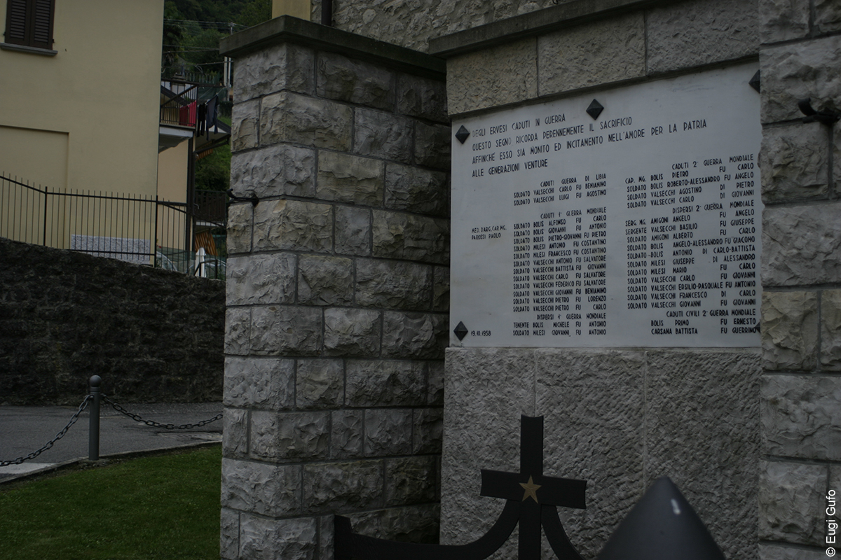 Oltre alla solidarietà e cultura, a Erve c’è anche la storia: il monumento ai caduti nelle due guerre mondiali. Non sono riuscito a fotografarlo per intero perché proprio davanti a esso ha parcheggiato un food truck.