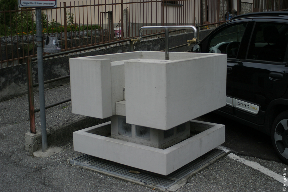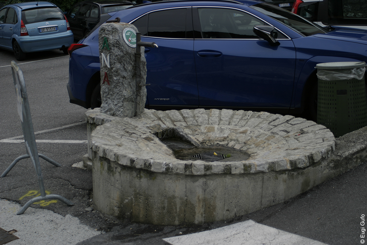 La stranezza più grande legata all’acqua è, a Erve, questa colonna d’acqua realizzata nel 2020 dalla sezione bergamasca della Associazione Nazionale Alpini (ANA). È esteticamente interessante, ma poco pratica: provate a immaginare come avreste fatto a utilizzarla.