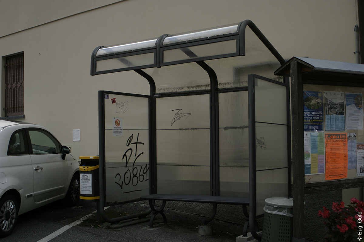 E la fermata degli autobus da qualità estetiche un po’ dubbie.