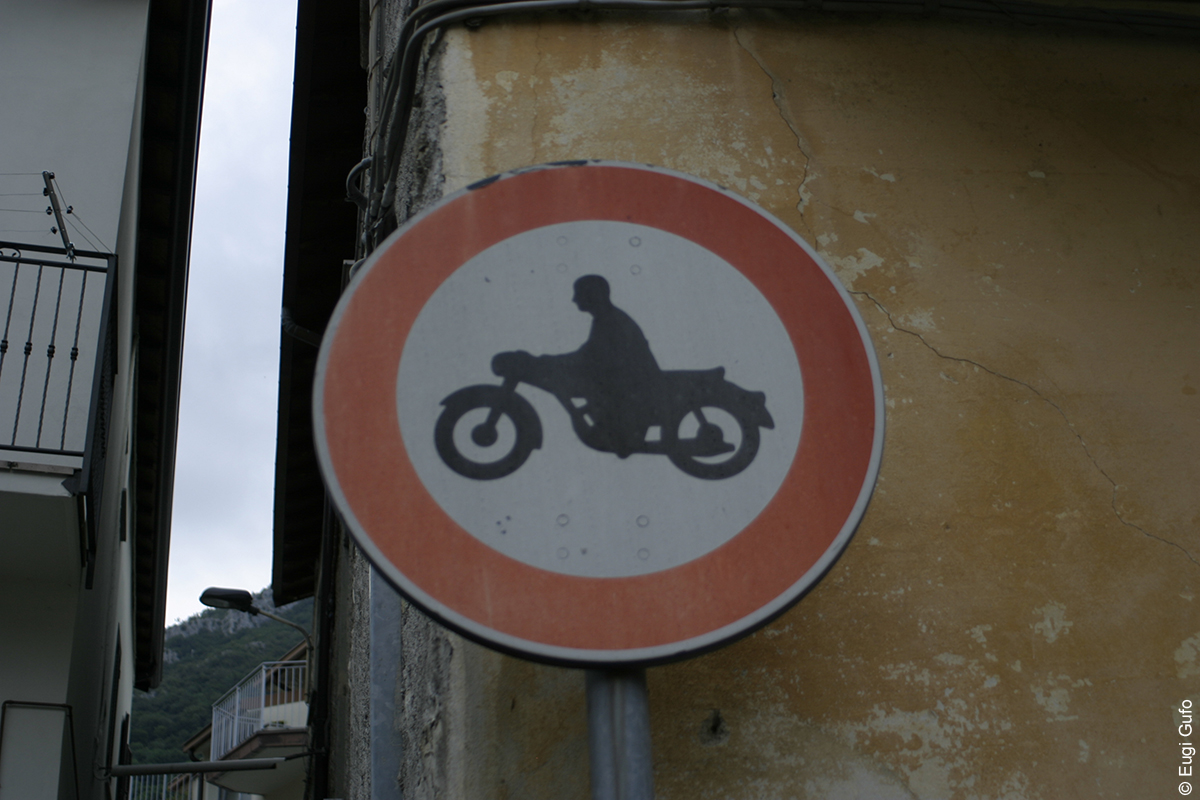 In una delle piccole vie del centro ho avvistato il cartello stradale «divieto di transito ai motocicli» ufficialmente adottato dal 1959 al 1992 (il design adottato ora è molto più primitivo). Spero che l’amministrazione locale non decida di sostituirlo: si trova in un punto dove le moto fisicamente farebbero un po’ fatica ad arrivare, quindi non svolge una funzione pratica, ma solo quella di un pezzo da museo. E gli artefatti storici devono essere accessibili agli occhi di tutti.