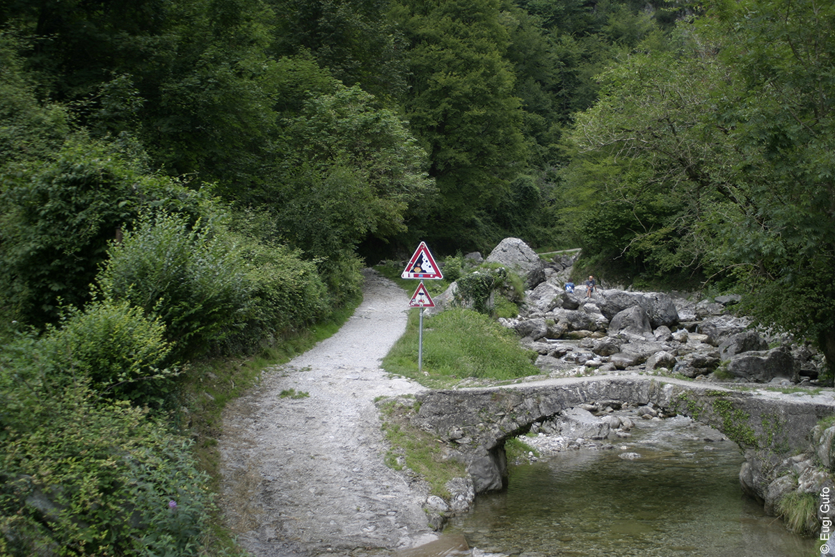 Si tratta del primo sentiero di montagna di questo viaggio! È leggermente più lungo e faticoso della strada automobilistica – perché creato secoli fa con le tecnologie di allora e non avente la pavimentazione piatta come l’asfalto – ma esteticamente molto più bello. E poi, non si va a camminare in montagna se si ha paura di faticare troppo! In ogni caso preciso che questo sentiero non ha una pendenza esagerata, ma ha dei lunghi tratti con la pavimentazione uniforme ed è recintato bene.