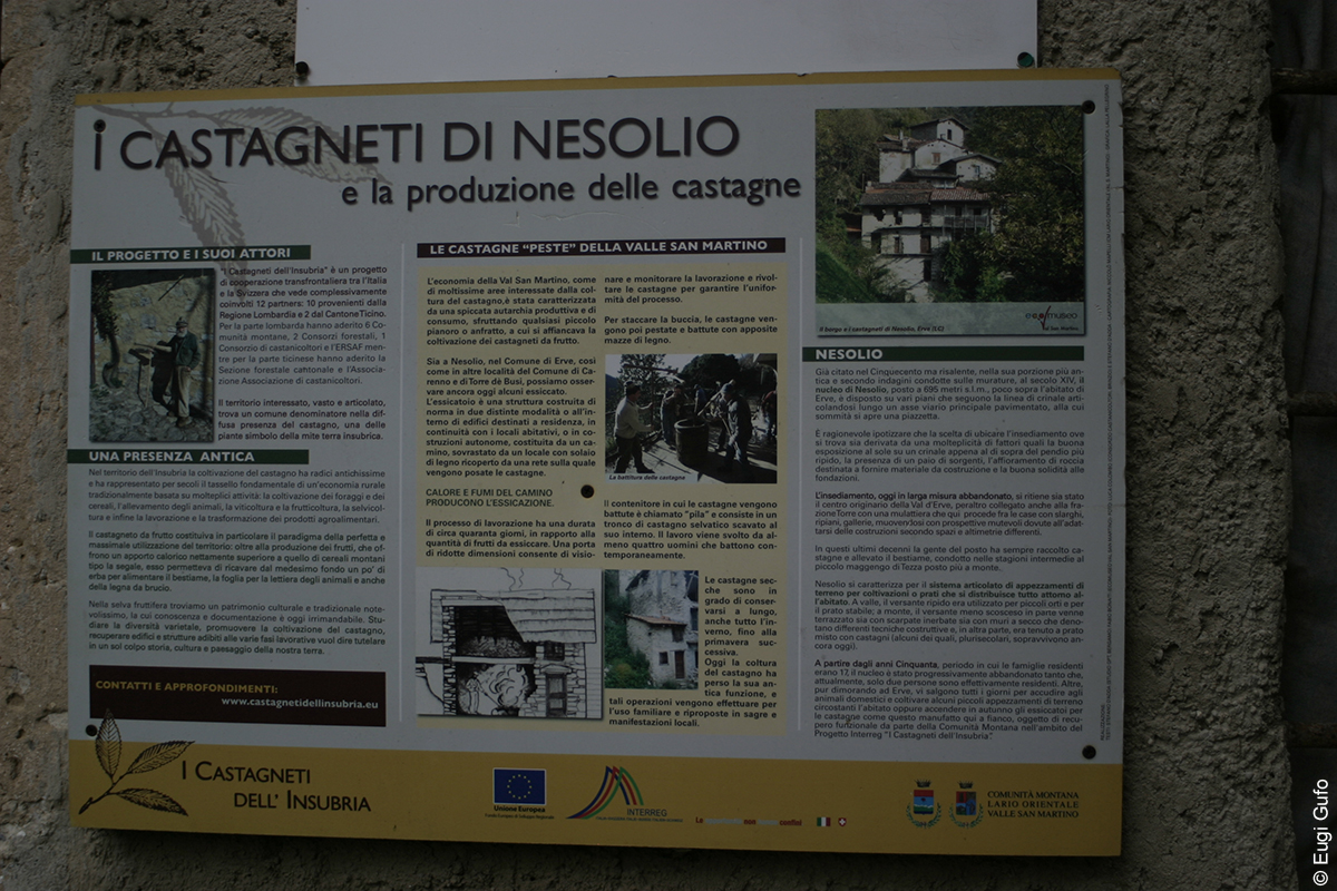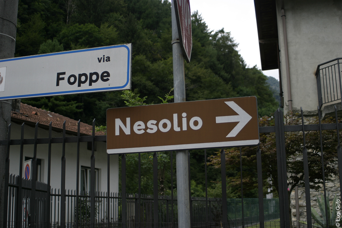 Stranamente – e ingiustamente – a Erve c’è solo un (1) cartello stradale che indica la direzione per Nesolio: si trova quasi in estrema periferia del paese, nella sua parte più vicina alle montagne tipo il Resegone. Se vi muovete con un navigatore (pigri!), cercate la via Foppe e non fatevi ingannare dal fatto che a prima vista sembra un vicolo cieco: in realtà infondo gira e la strada per Nesolio prosegue in un modo molto intuitivo.