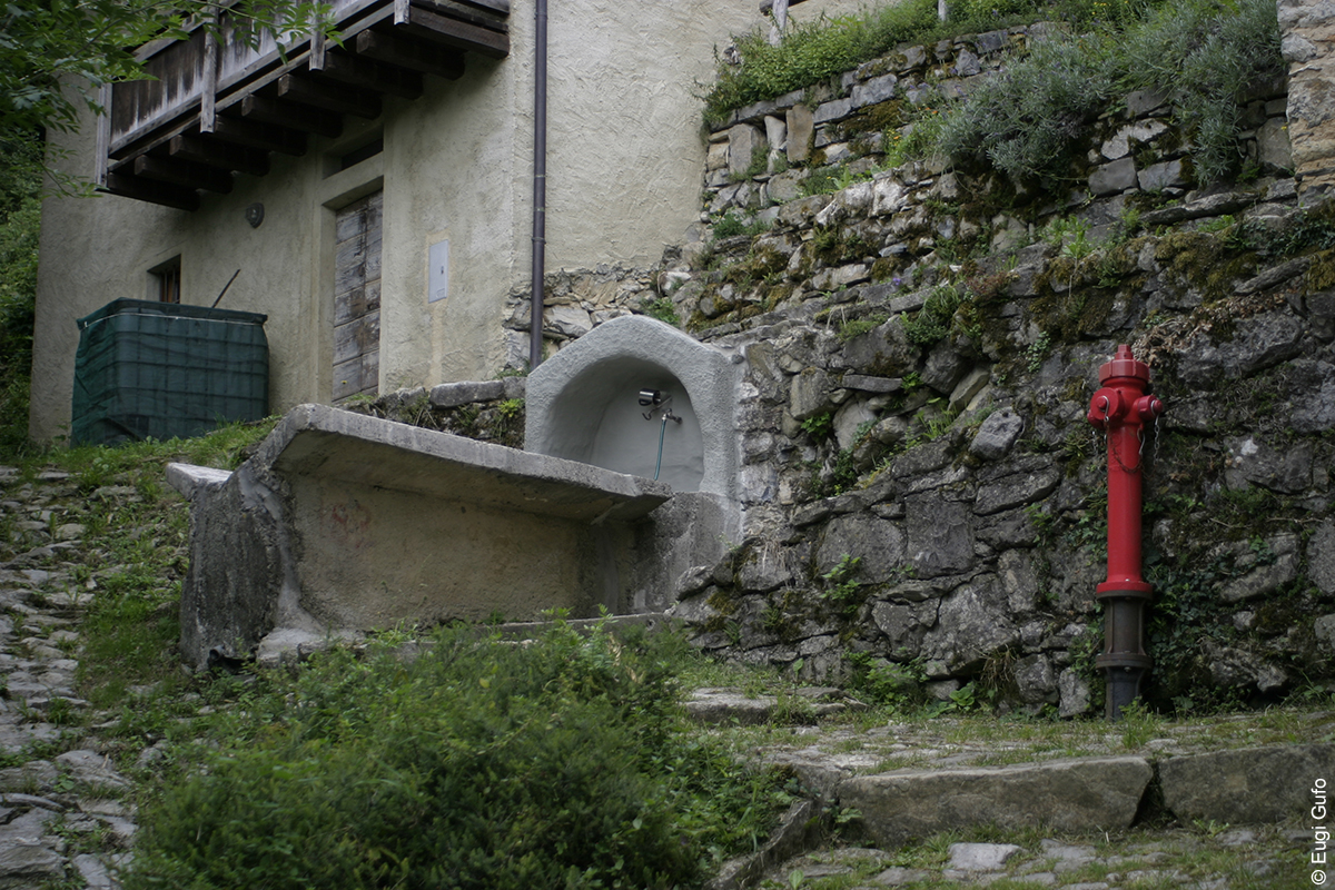 Ma il «centro» di Nesolio si distingue per qualcosa altro oltre alla propria posizione geometrica nel paese? Certo! Si distingue per due preziose fonti d’acqua: la colonnina idrante e un piccolo lavatoio con una tazza metallica appesa al rubinetto. Non ho testato la qualità potabile dell’acqua (in quel momento avevo ancora una buona scorta dell’acqua propria di qualità certa), mentre lo strumento contro gli incendi è da riconoscere utilissimo (anche perché la macchina dei vigili del fuoco non può avvicinarsi a tutte le case). Inoltre, l’attacco dell’idrante testimonia, indirettamente, l’esistenza di un acquedotto di qualità nel paese.