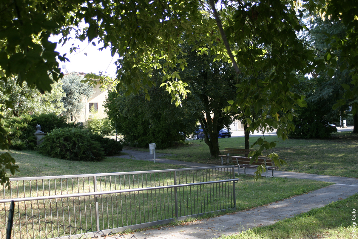 Per quanto riguarda altri monumenti, invece, ho trovato solo una specie di memoriale permanente chiamato «zona di rispetto». Si trova nell’angolo formato dalle due chiese mostrate poco sopra ed è dedicato ai militari caduti nelle due guerre mondiali e ai partigiani uccisi. Una delle anomalie più evidenti di questo monumento è la totale assenza delle opere scultoree di qualsiasi dimensione.