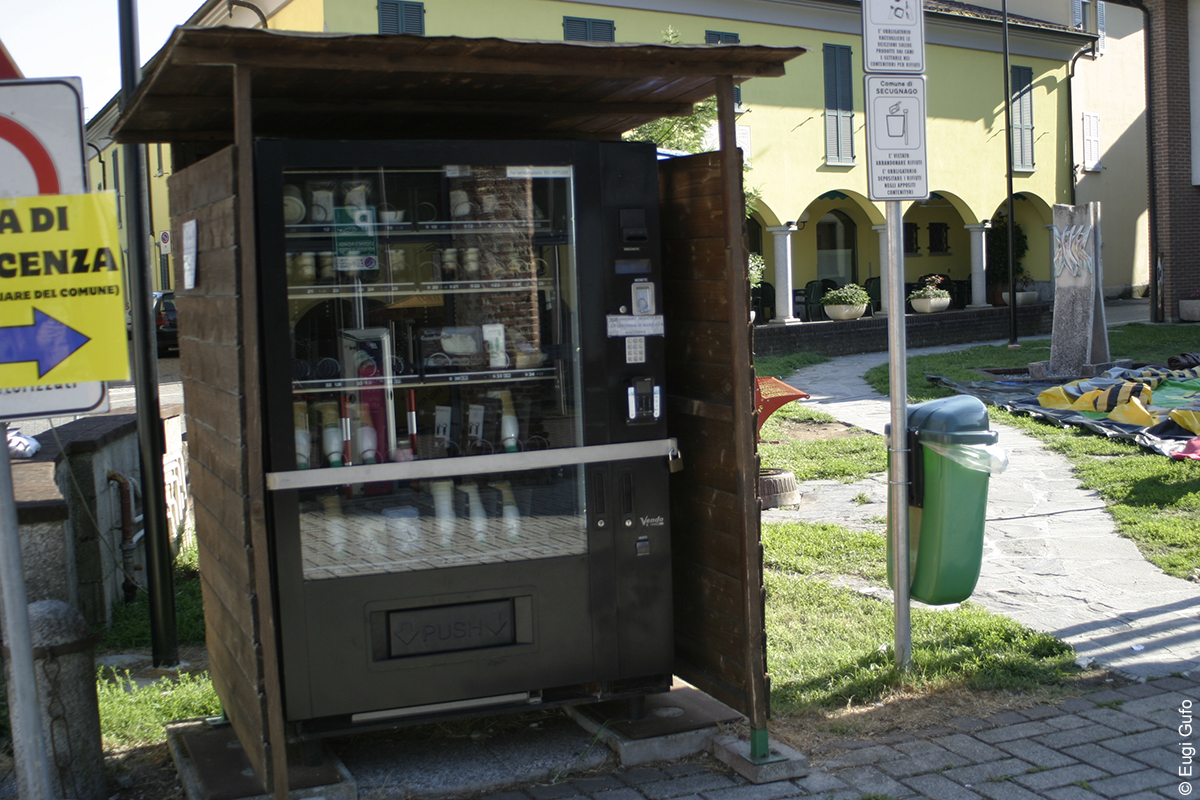 Un’altra cosa curiosa avvistata a Secugnago è la macchinetta che vende non le bevande o gli snack (come nella maggioranza dei casi) e non il latte locale (come ho visto in alcune piccole località italiane, per esempio Manerbio), ma i formaggi, il burro e i succhi di frutta. L’idea è interessante, ma non so quanto sia popolare il servizio.