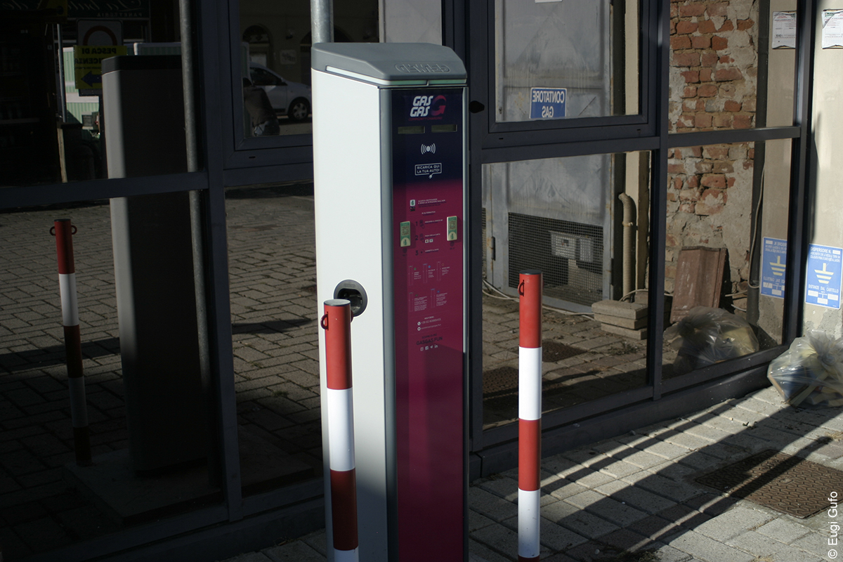 Praticamente di fronte, a pochi metri, c’è una colonna di ricarica per le macchine elettriche: è solo la seconda volta che vedo questo tipo di servizio in un piccolo paese di provincia (la prima volta è stata a Nosadello appena quattro mesi prima).